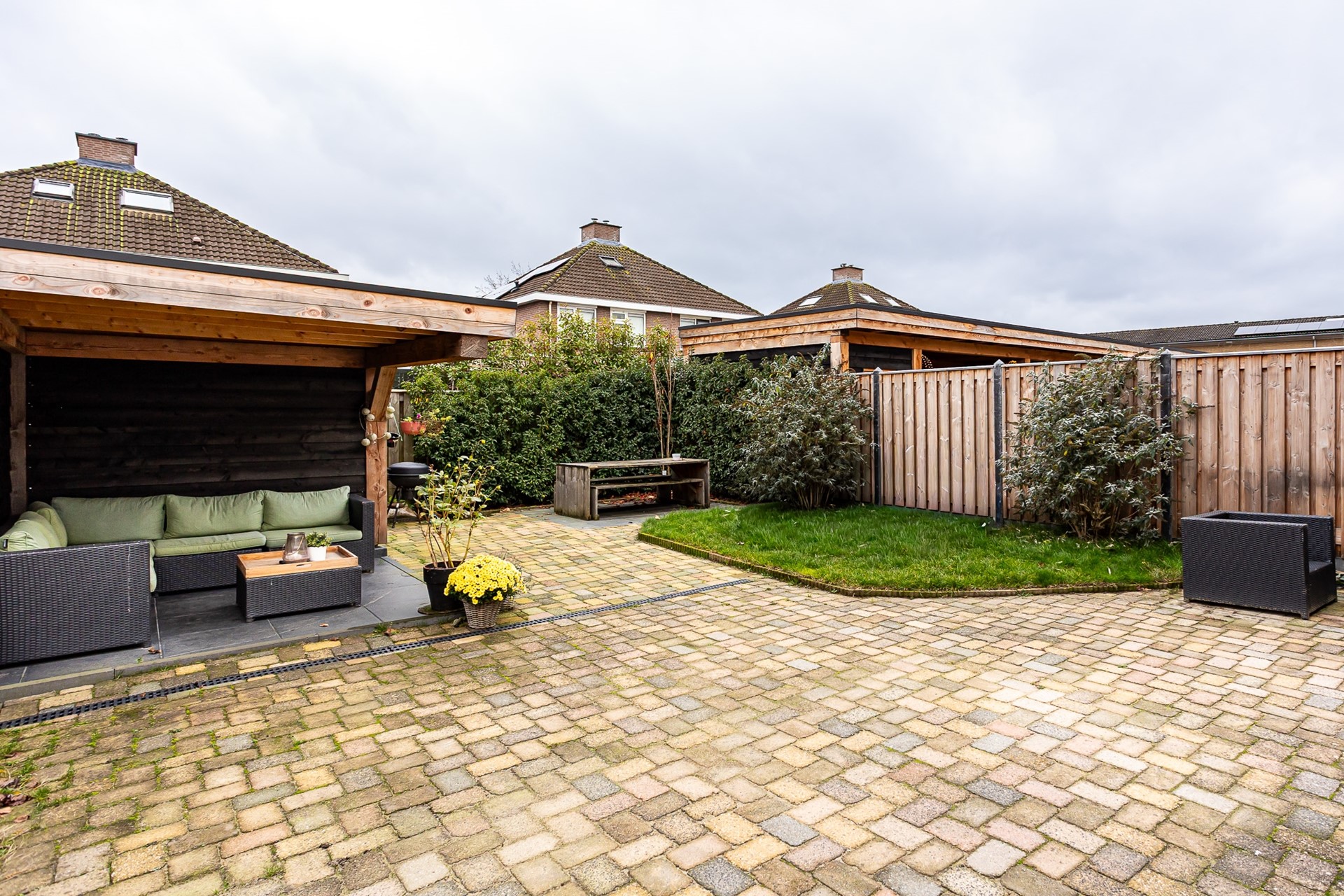 De onderhoudsvriendelijke tuin met houten tuinberging en overkapping is gelegen op het zuiden. Er is parkeergelegenheid op eigen terrein en in de directe omgeving.