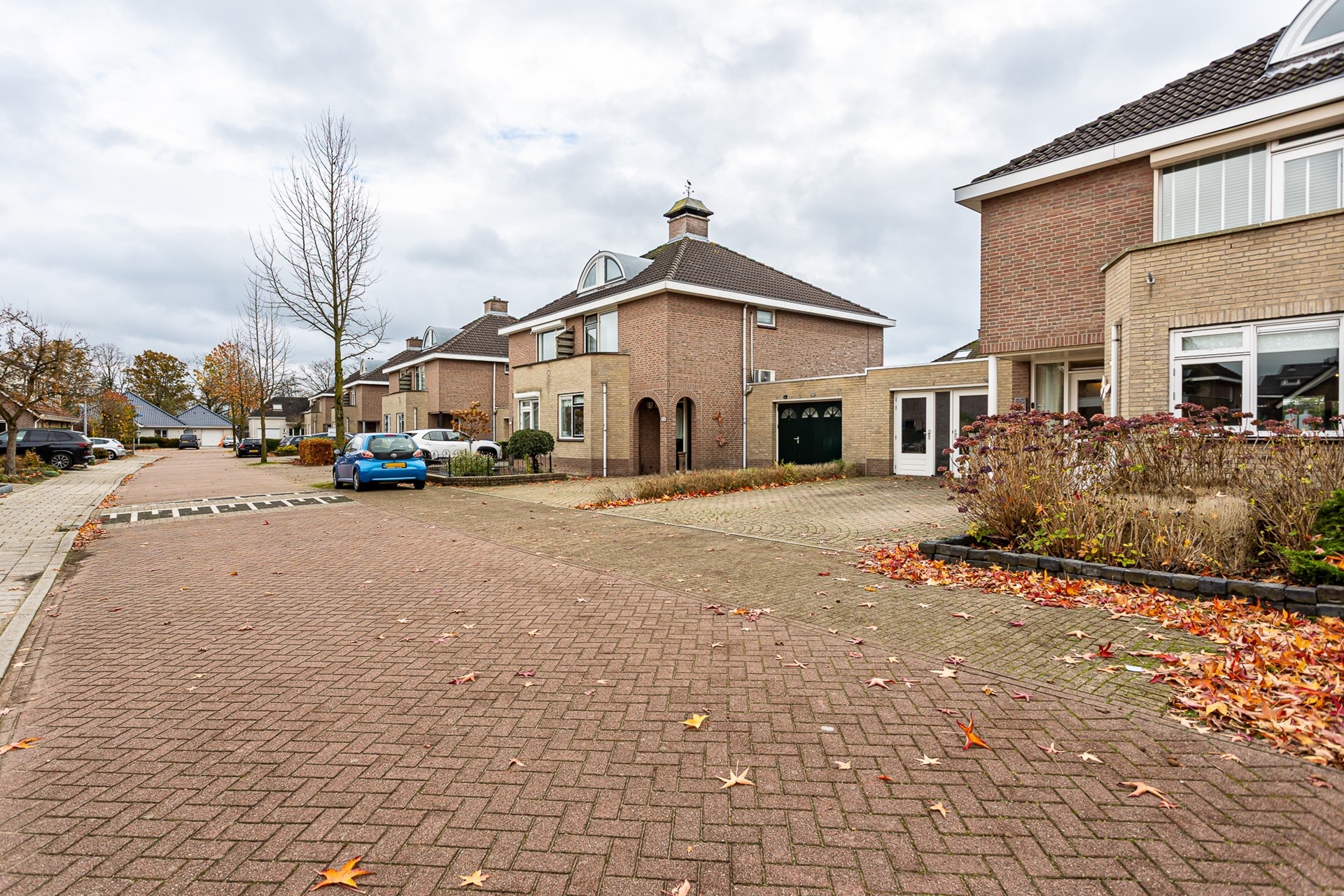 In gewilde moderne woonwijk nabij scholen, speelvelden en voorzieningen gelegen ruime HALFVRIJSTAANDE (type 2/1 kap) WONING met GARAGE, zonnige tuin (Z) met houten TUINBERGING en OVERKAPPING.
