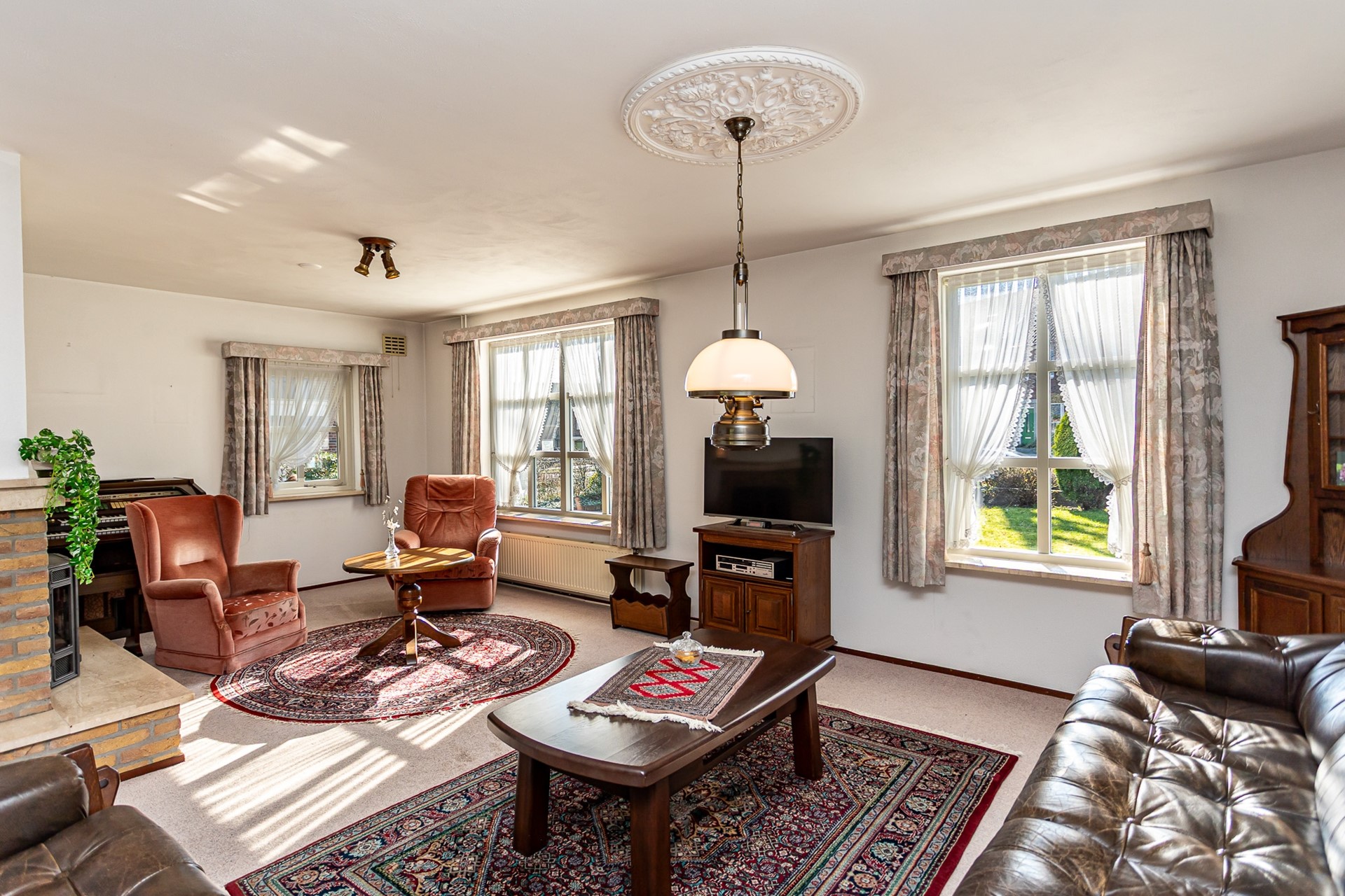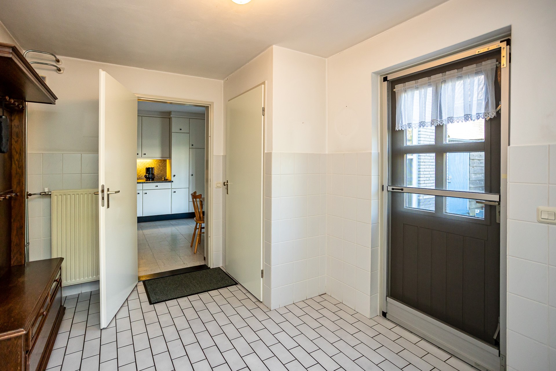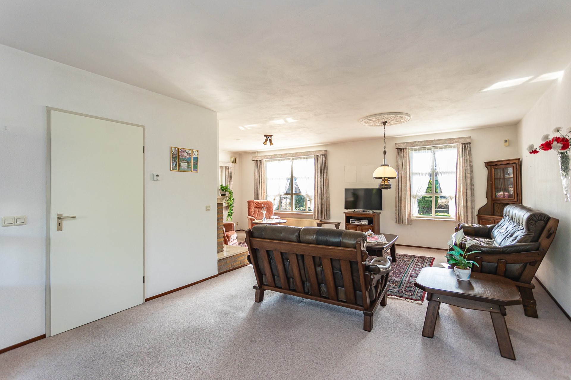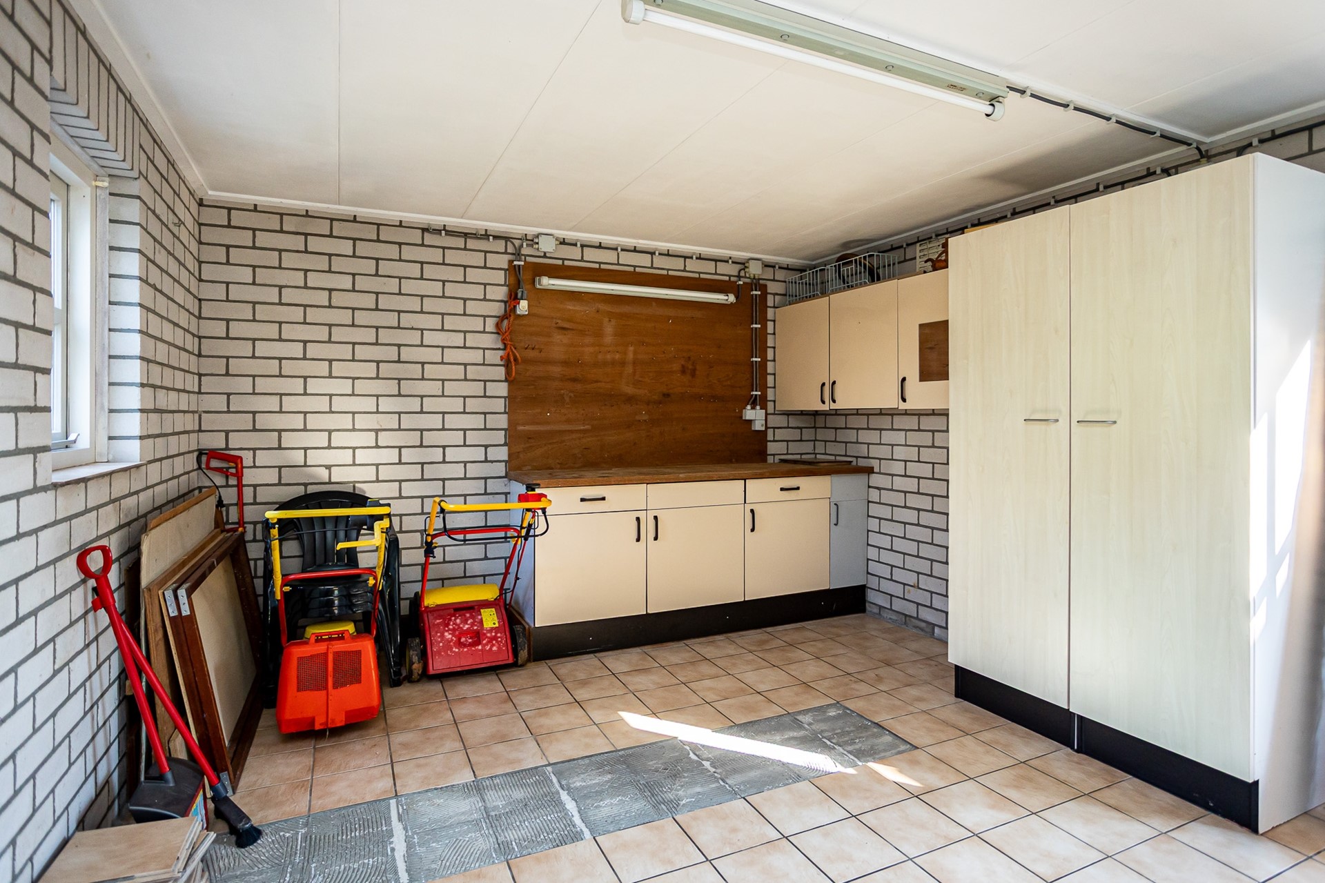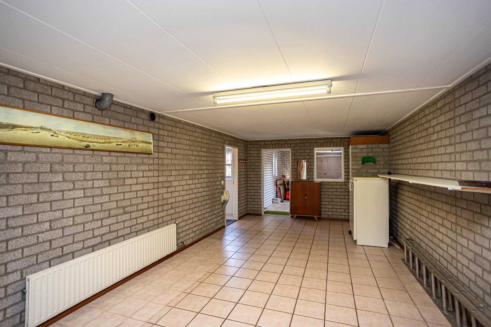 hal/entree, toilet, royale L-vorm eet-/woonkamer met toegang tot terras en tuin middels een schuifpui, halfopen keuken met luxe keukenblok in hoekopstelling met diverse inbouwapparatuur, bijkeuken met toegang tot terras en tuin, berging en ruime garage (hier zijn mogelijkheden om de woning levensloopbestendig te maken).