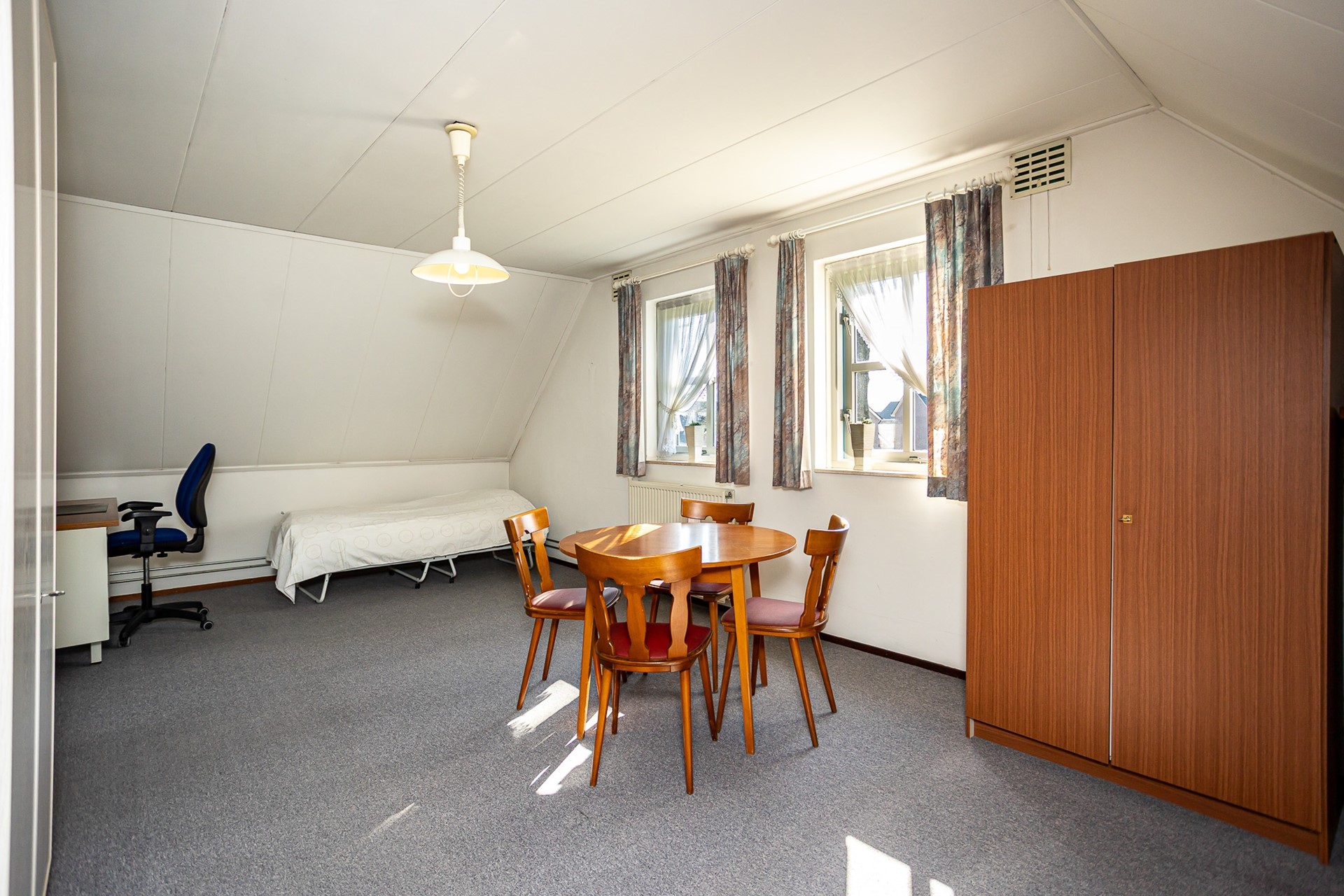 overloop, bergkast me cv-ketel, twee slaapkamers (op eenvoudige wijze zijn de slaapkamers te splitsen tot 3 – 4 slaapkamers), badkamer met dakkapel, douche, twee vaste wastafels en witgoedaansluitingen, separaat toilet met fontein.