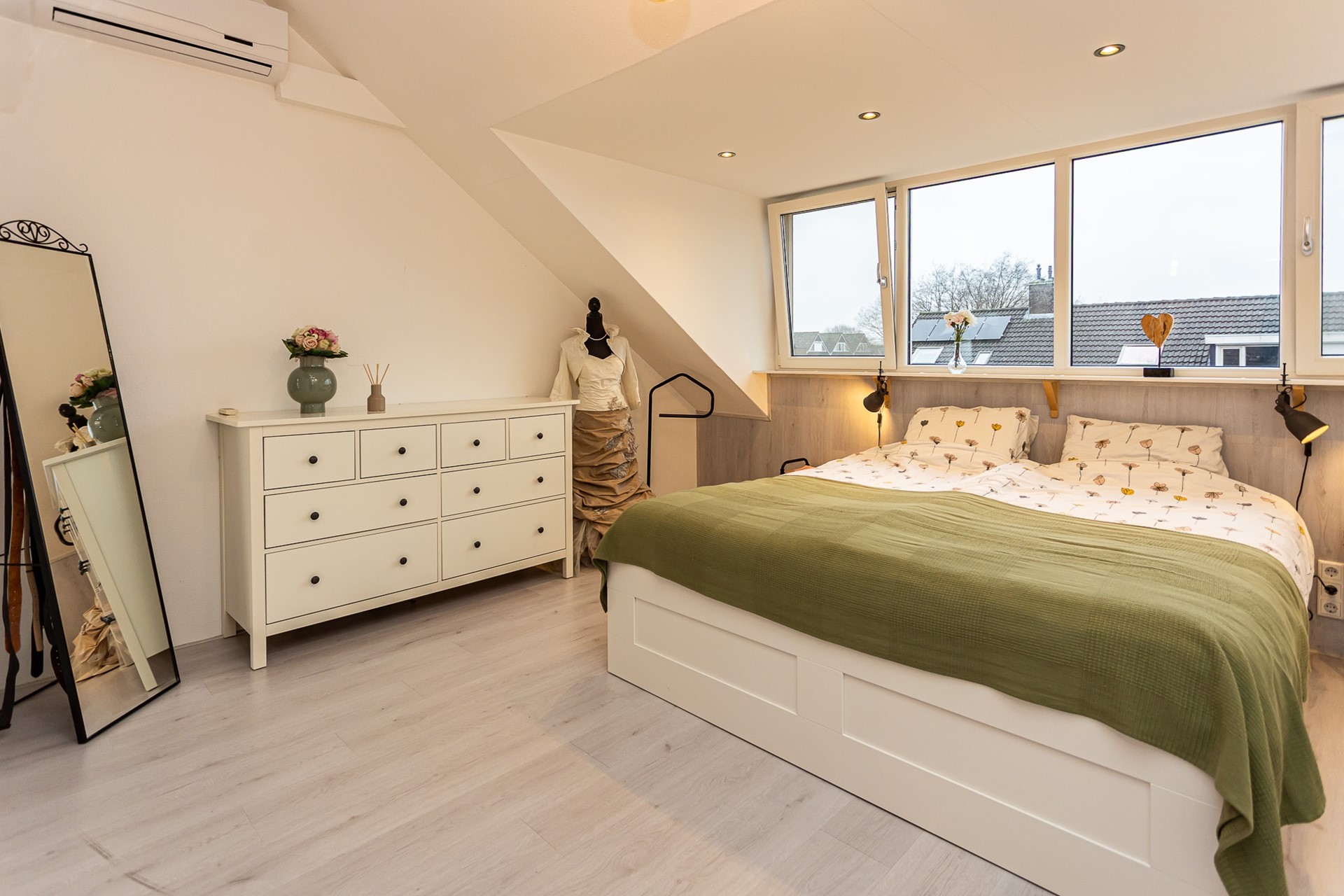 voorzolder met wastafel en witgoedaansluiting, royale 4e slaapkamer met dakkapel, airco-unit (alleen koelen) en elektrisch bedienbaar rolluik, werkkamer met dakraam, berging. Toegang tot vliering middels vlizotrap.